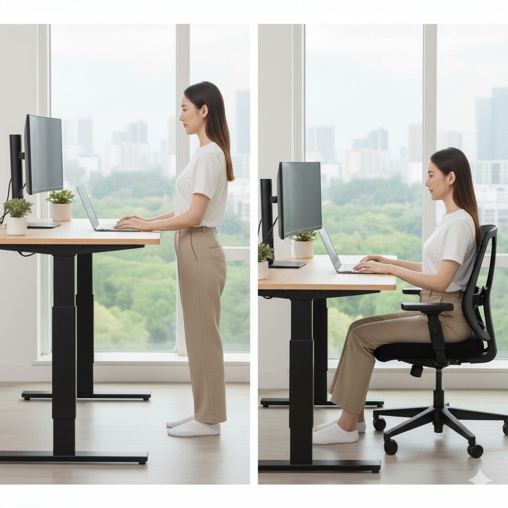「普通のデスクと何が違うの?」と感じる方もいるかもしれません。昇降デスクを導入することで、私たちの働き方と健康に大きなプラスの変化が生まれます。ここでは、その代表的なメリットを3つご紹介します。